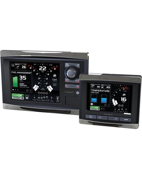 VesselView4 是標(biāo)準(zhǔn)的組合,搭配 4 英寸玻璃薄膜液晶屏和更新圖形用戶界面??梢宰屇瑫r監(jiān)控最多兩個引擎。 VesselView7 包括一個更大的 6.4 英寸觸摸屏和數(shù)字接口,可以讓您快速、輕松地訪問數(shù)據(jù)。最多同時監(jiān)視四臺發(fā)動機??勺鳛楹D使用。鏈接到 Simrad? 雷達和聲納以及 Sirius? 天氣。一個整體的數(shù)字信息樞紐。