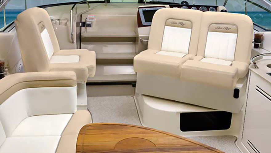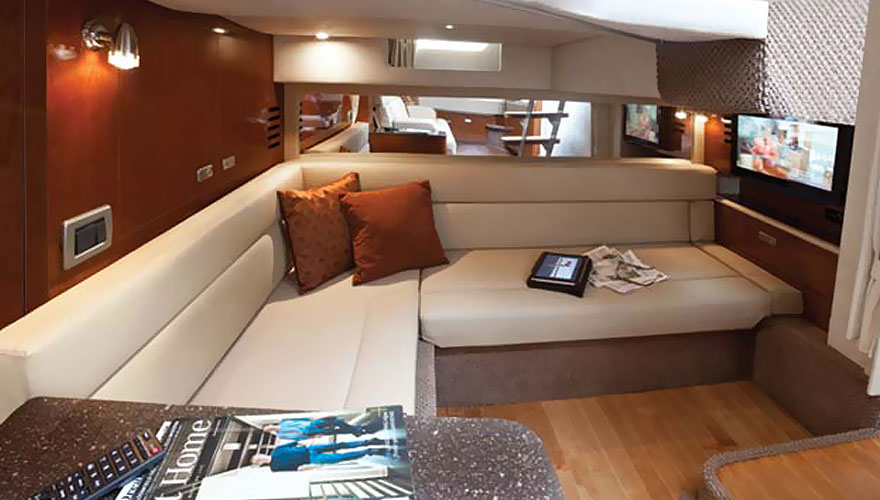 SeaRay 370 Sundancer空間非常寬敞,是Sport Cruiser系列的經(jīng)典之作。不論您是朋友聚會(huì)或是家庭出游,這款游艇都是您完美的選擇??蛇x用汽油或柴油發(fā)動(dòng)機(jī),讓您自己選擇最適合您的發(fā)動(dòng)機(jī)。V型船艙的睡床,沙龍區(qū)可容納六個(gè)人。加上廚房設(shè)施齊全,配有平板電視和DVD播放器。