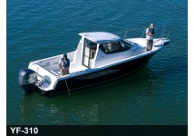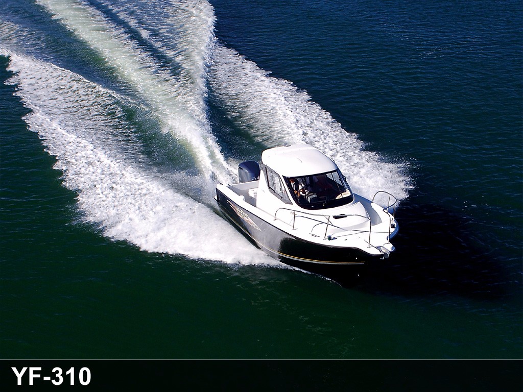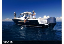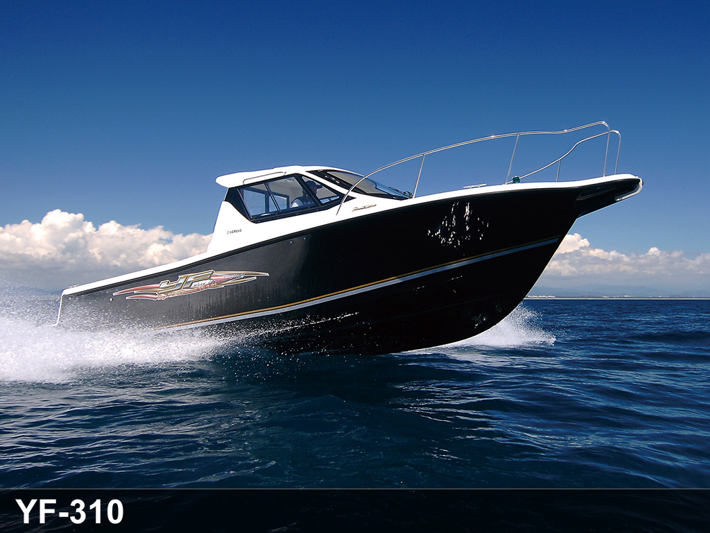 配備了強勁馬力的YF系列巔峰產品--YF-310。平穩(wěn)地推下節(jié)流閥,一口氣加速到滑翔姿態(tài),讓人感受到前所未有的舒暢感。在被朝陽映紅宛如鏡面般的海面上,安靜,且強有力的四沖程引擎聲音和波動仿生推進板將水面分割開的愉悅聲音形成了漫長的白色軌跡并一直延續(xù)下去。漂流釣魚時在低速區(qū)的強韌扭矩與向釣魚點移動時的速度性能無一不讓人鼓舞雀躍。 釣魚者所憧憬的,屬于自己的釣魚人生,將從這艘游艇開始起航。照片中船體顏色與船外機為日本式樣與中國式樣有所不同