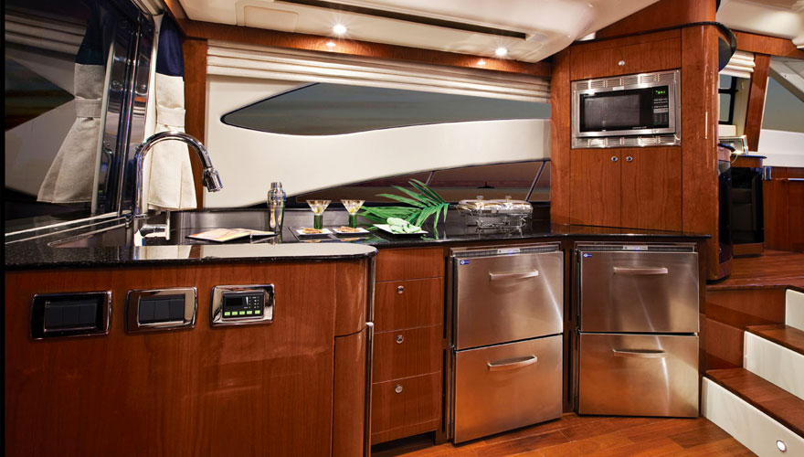 Meridian 541 Sedan 游艇全新的Meridian游艇旗艦艦隊代表品牌一個突破性的創(chuàng)新。在造船業(yè)中建立新的領(lǐng)先優(yōu)勢,為水上生活的宜居性,機(jī)動性樹立了新的標(biāo)準(zhǔn)。 541 Sedan是Meridian第一次標(biāo)準(zhǔn)配備有世界上技術(shù)最先進(jìn)的推進(jìn)系統(tǒng)之一的Zeus。因此,在近54英尺長的541,雙獨立鉸接Zeus驅(qū)動器,可輕松地操作和控制。 完美生活空間設(shè)計的和寢室為水上生活創(chuàng)造一個溫馨,輕松的氣氛。三個客艙,雙頭布局可容納六名乘客,而改變餐桌椅布局不可容納多兩人。親切舒適的船艙內(nèi)部同樣地反映在541的外部空間,以及在船尾的駕駛艙與相鄰的廚房,飛橋可選配全覆蓋硬頂,可為船員們提供座位,茶點和娛樂。