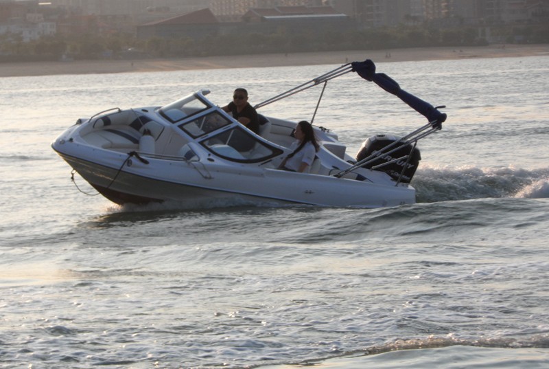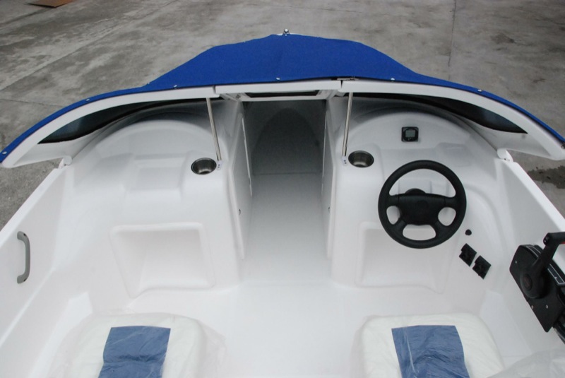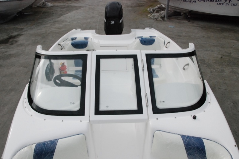 本艇采用的舷外機(jī)是電啟動前操式的。由駕駛臺直接操縱發(fā)動機(jī)油門和舷外機(jī)的轉(zhuǎn)動以及推進(jìn)器的轉(zhuǎn)向,以達(dá)到自由、安全、可靠的使艇前進(jìn)、倒退和艇體的轉(zhuǎn)向。駕駛臺上配有必要的操縱儀表和發(fā)動機(jī)的儀表。在使用功率下航速可達(dá)50Km/h。